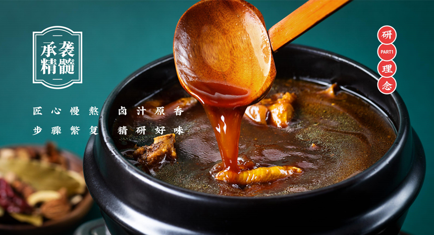 研卤堂是武汉乐美缘餐饮管理有限公司于2019年全力推出的一个聚焦香糯热卤的轻餐品牌。以致敬每一位真正爱吃卤味的人为宗旨,颠覆传统老卤制作工艺,提倡健康热卤的饮食方式,严选二十四味中草药杜精研配方,绝香精等人工添加剂,独创的二十四味中草药及香料配方调配出如今的味道。