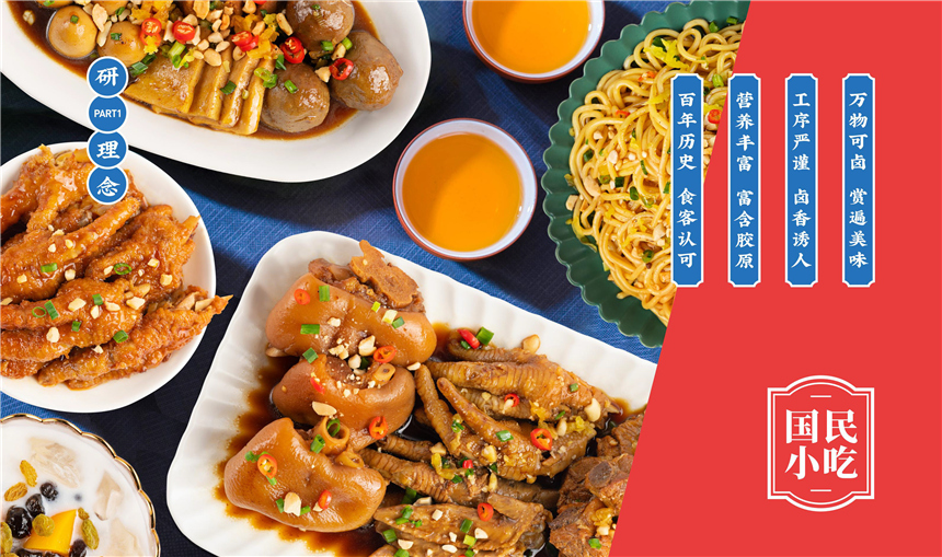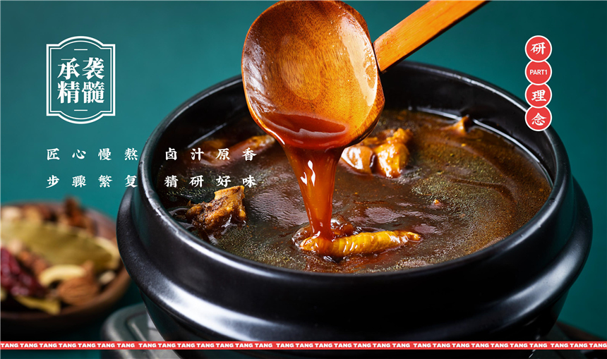 区别于市场上的冷卤及普通热卤,研卤堂以热卤品类为基础,结合时代进行创新变革,摒弃了老卤,以新鲜卤水熬制,现场制作,用时间和研家专属配方制作“香糯热卤”,打造“研家味道”。