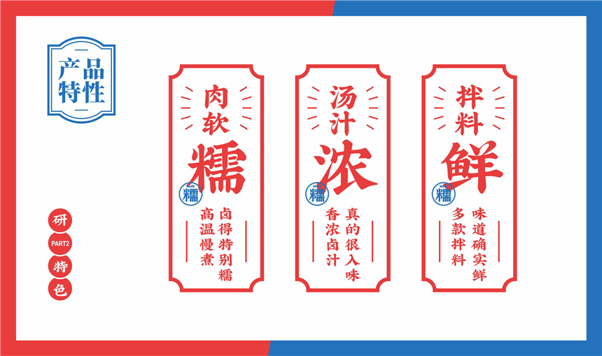 “糯”就是核心,“最简单直接,不需要曲折”的要求,“热卤更糯更入味”脱颖而出,没有呼唤宣传,只是明明白白告知:热卤更糯更入味。隐性凸显定位香糯热卤的研卤堂——热卤正宗好吃。