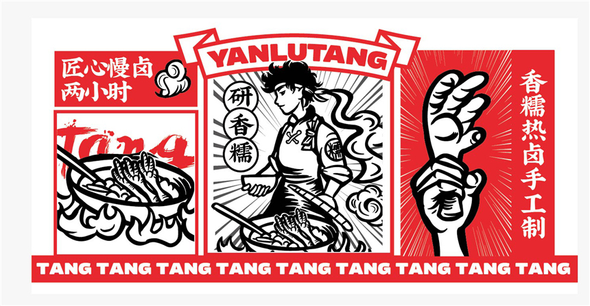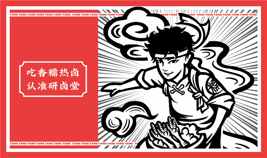 探索研卤堂自身,品牌名(堂)+热卤品类(传统),成为IP形象的基调。