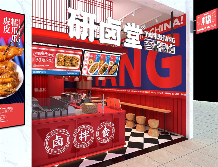 空间墙面的“NUO”、热卤区的“热卤更糯更入味”、拌料区的“卤、拌、食”,随处可见的文案展示,整体聚焦产品核心,强化消费者记忆点。