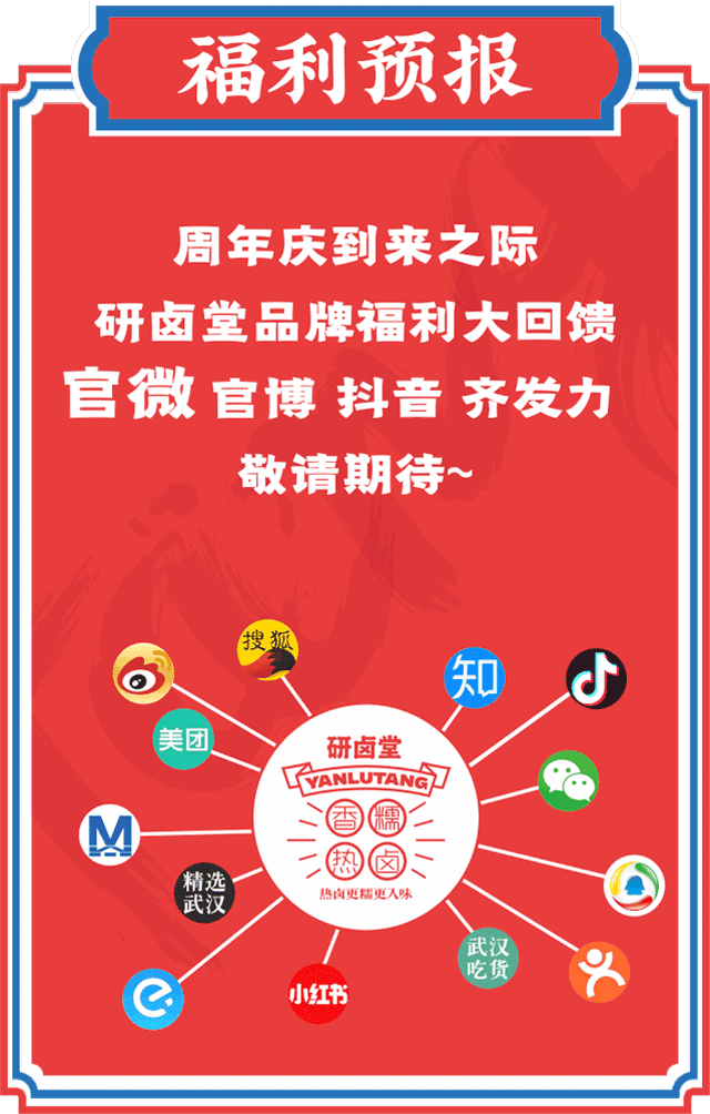 *因研卤堂·广州店、研卤堂·汉街万达店新店开业活动,故不参与此次周年庆活动