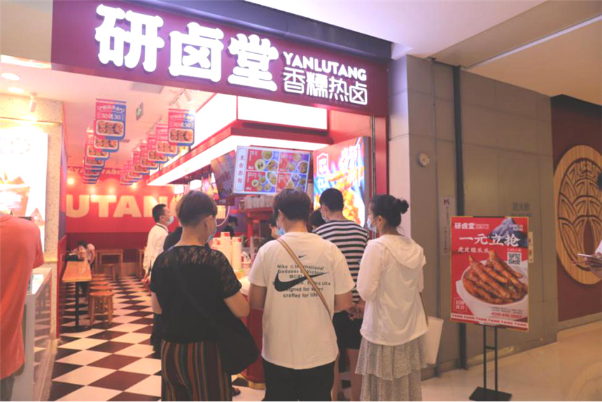 研卤堂自2019年开设第一家实体门店开始,便一直站在餐饮舞台话题的中央,曾经1元抢虎皮糯爪爪便曾引发排队热潮,中午高峰期甚至看不到队伍结尾,一度引起商场派出专门人员管理。