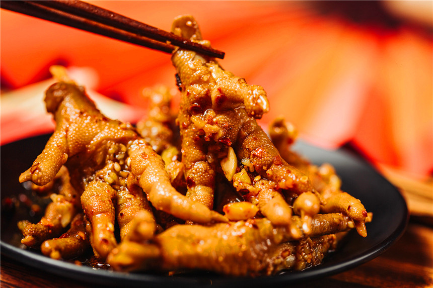 在新鲜卤汤里夹出的小鸡爪浸润了十足的味道,从皮到筋都很有吃头。可以想像这只鸡生前过得不错,长得挺肥美!