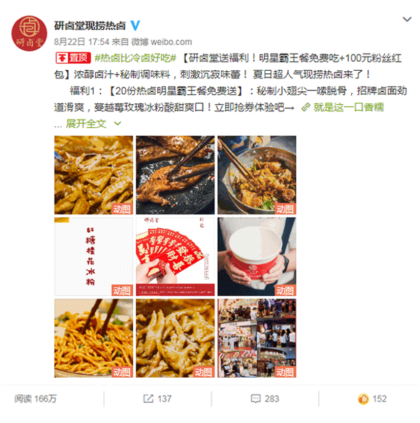 “鲜卤现捞,现拌鲜吃”是研卤堂的产品精髓,新鲜健康的食材制作模式也让热卤这一品类逐渐受到喜爱。免费小翅尖,现金抽奖等等让研卤堂真正回馈粉丝。