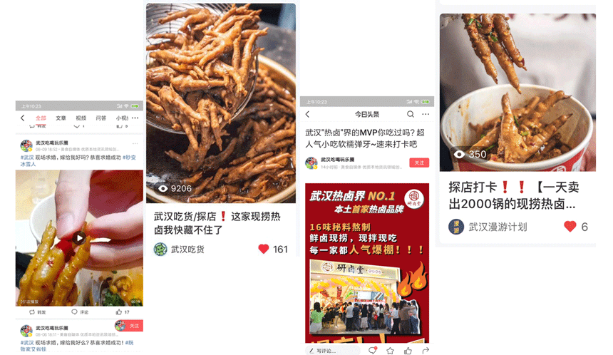 武汉吃货微信公众号,作为武汉首屈一指的美食类账号,绝对是美食界的风向标。它推送的《糯就一个字,1000份翅尖请你吃!这家顶配的现捞热卤我快藏不住了!》这篇文章被众多人转发,近万的点赞和留言印证了研卤堂确实受到市场欢迎。