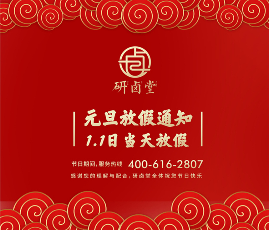 一、研卤堂总部行政部门定于2020年01月01日(周三)放假,01月02日(周四)正常上班。