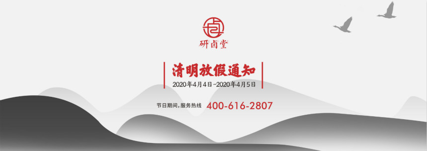 一、研卤堂总部行政部门定于2020年04月04日(周六)放假,04月06日(周一)正常上班。